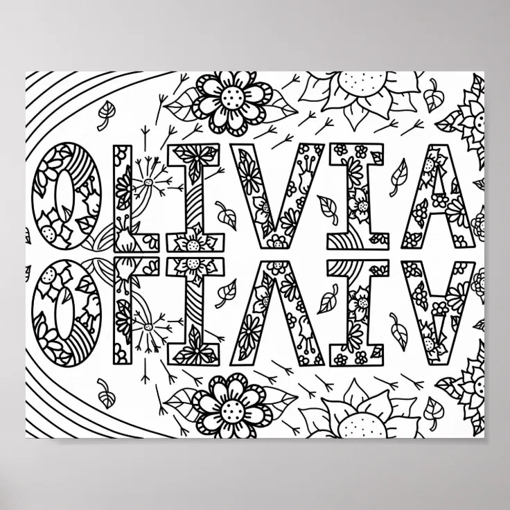 Black And White Coloring Page Girl S Name Olivia Poster Zazzle